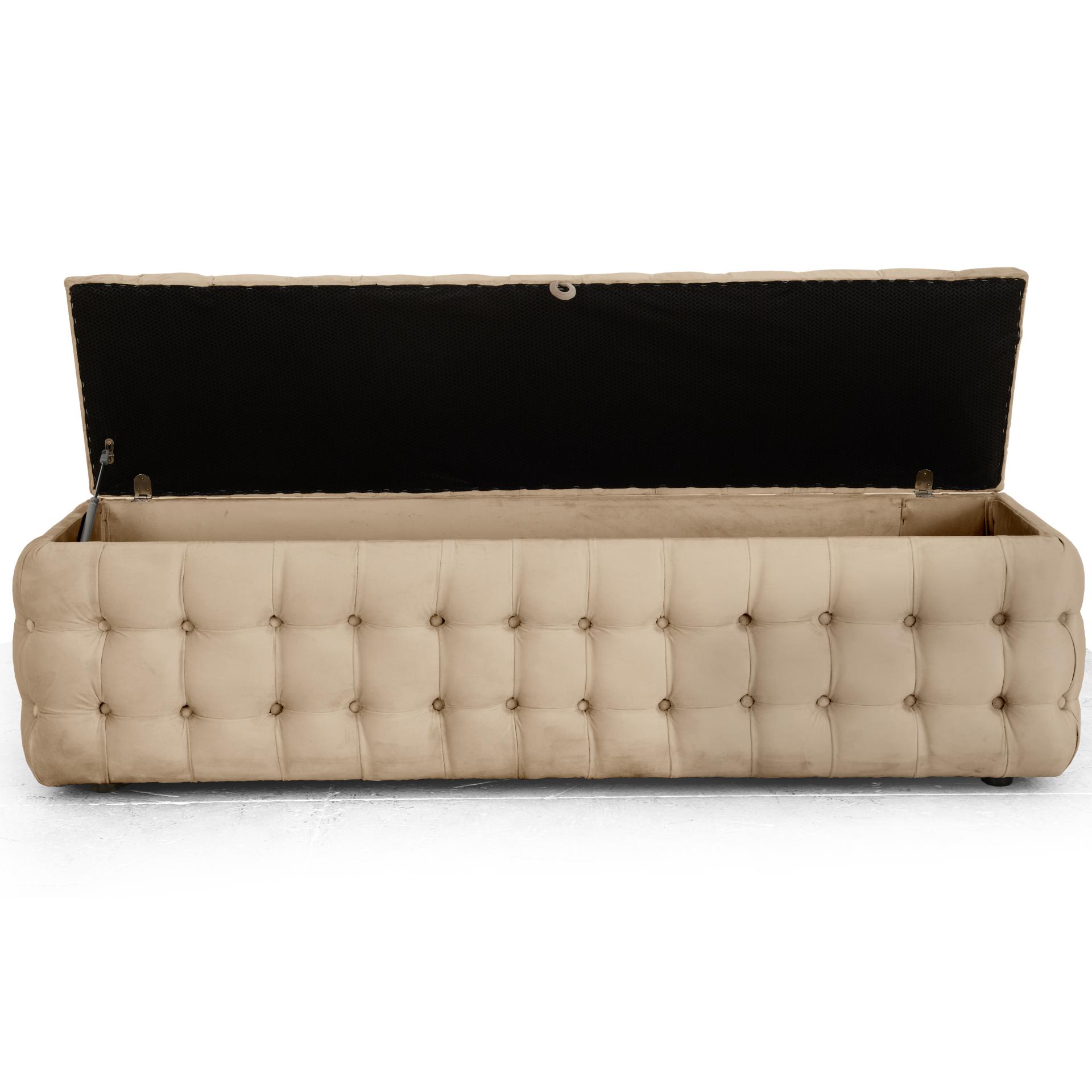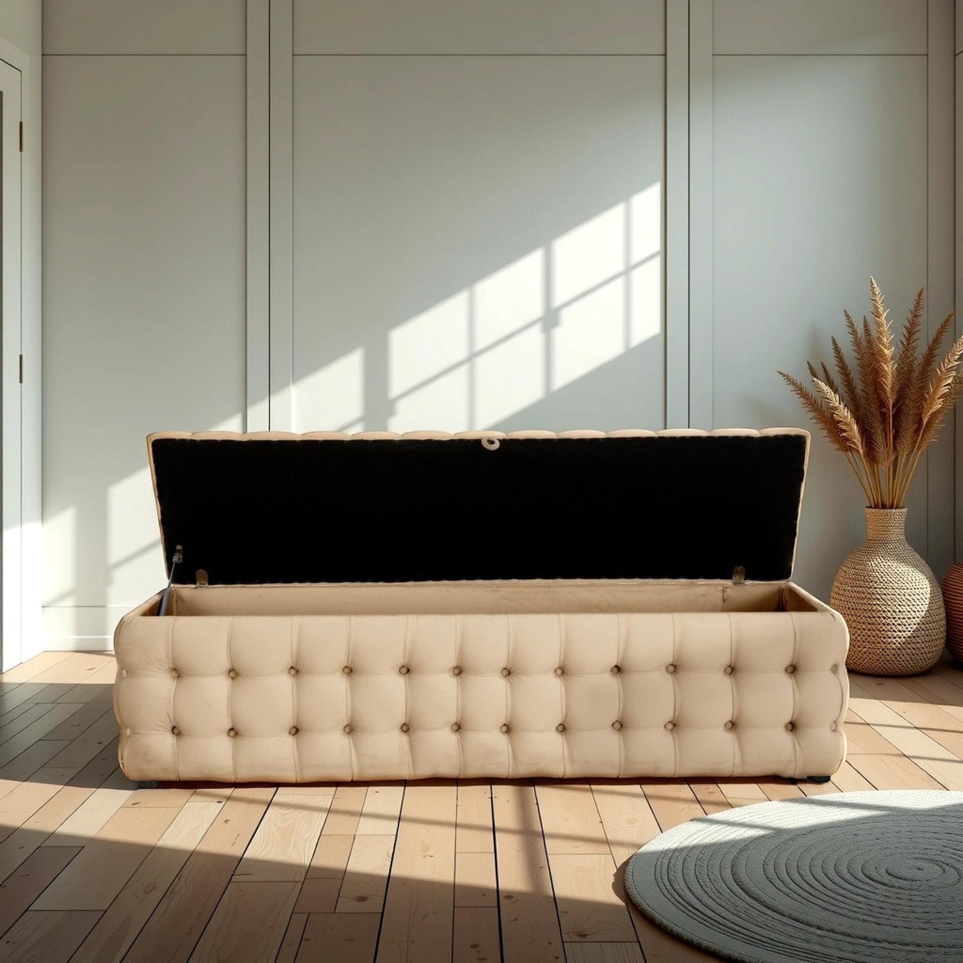 The Banfora Kist combines sophisticated design with generous storage, making it perfect for stashing extra bedding or seasonal items. Upholstered in plush velvet and accented with subtle tufting, it doubles as an elegant bench at the foot of your bed, enhancing both function and style in any bedroom setting.