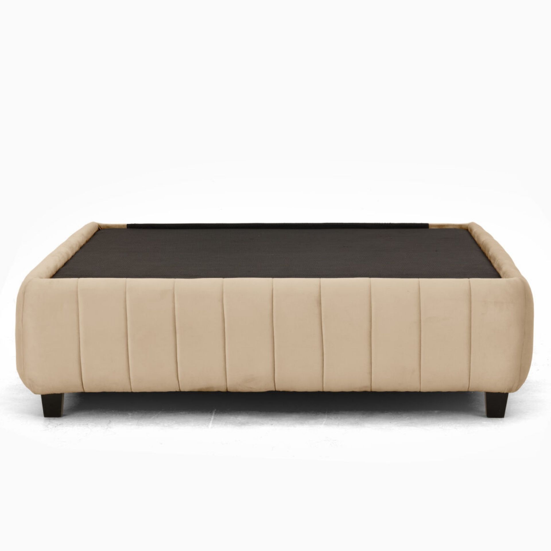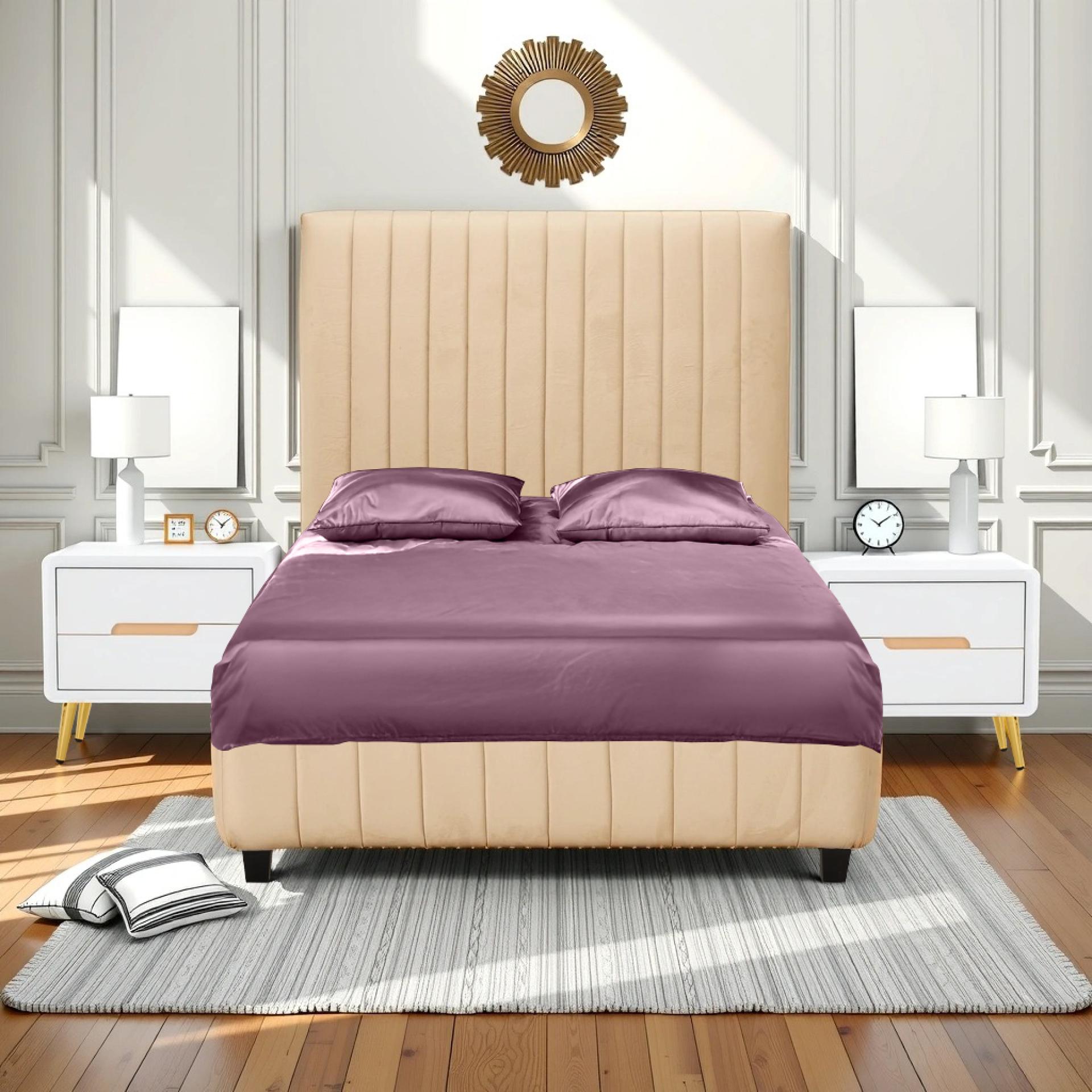 The Batouri Bed combines elegant straight lines with lavish velvet upholstery. Supported by a robust timber and plywood structure, it features high-density foam for optimal comfort and durability, perfect for modern interiors.