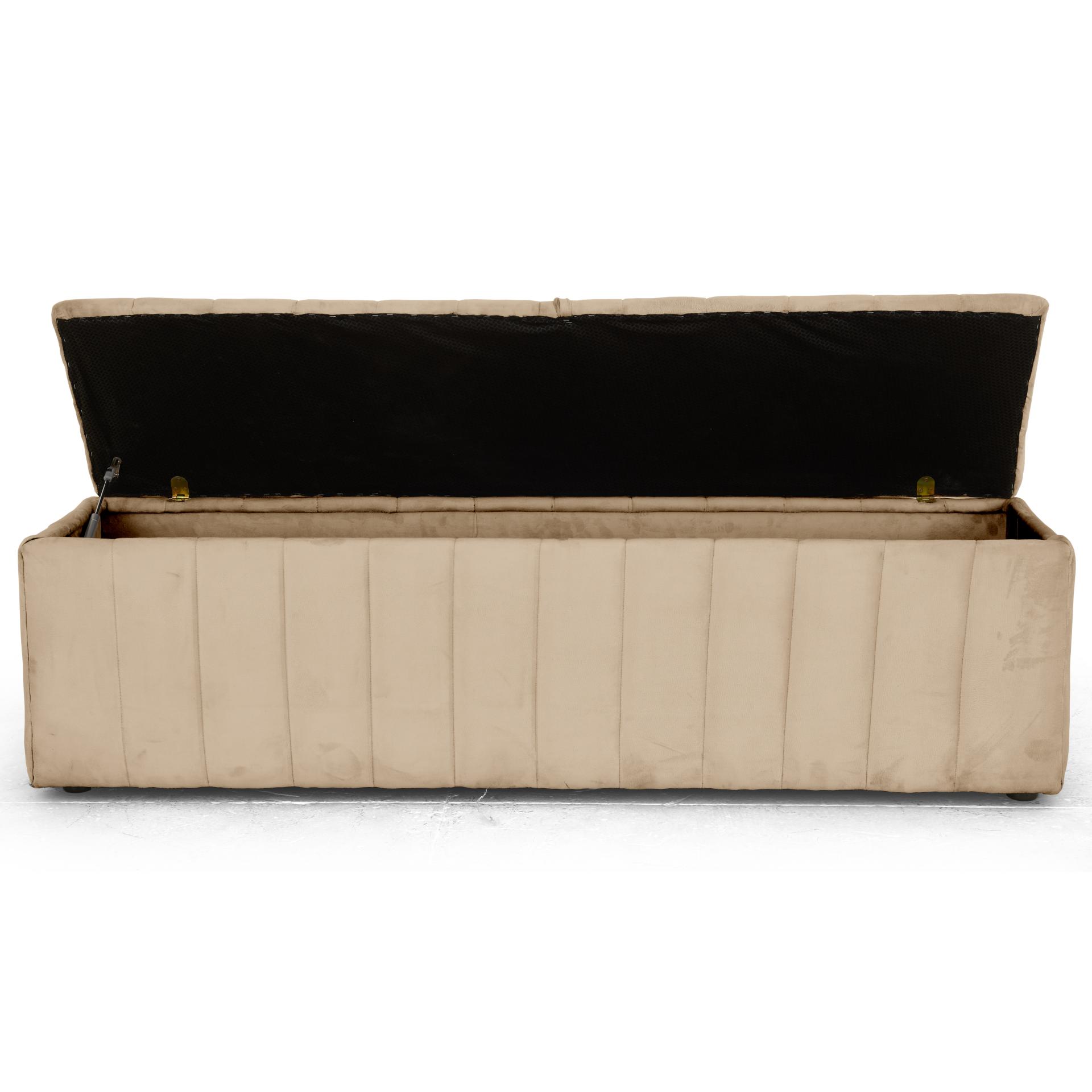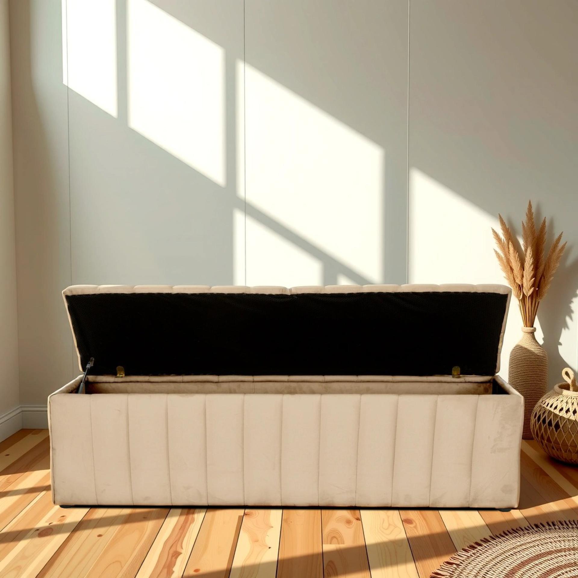 The Batouri Kist offers luxurious velvet upholstery and a smooth gas-lift hinge for effortless access to its roomy interior. Its refined silhouette and rich finish make it an eye-catching addition to any bedroom, providing both seating and concealed storage in one elegant piece.