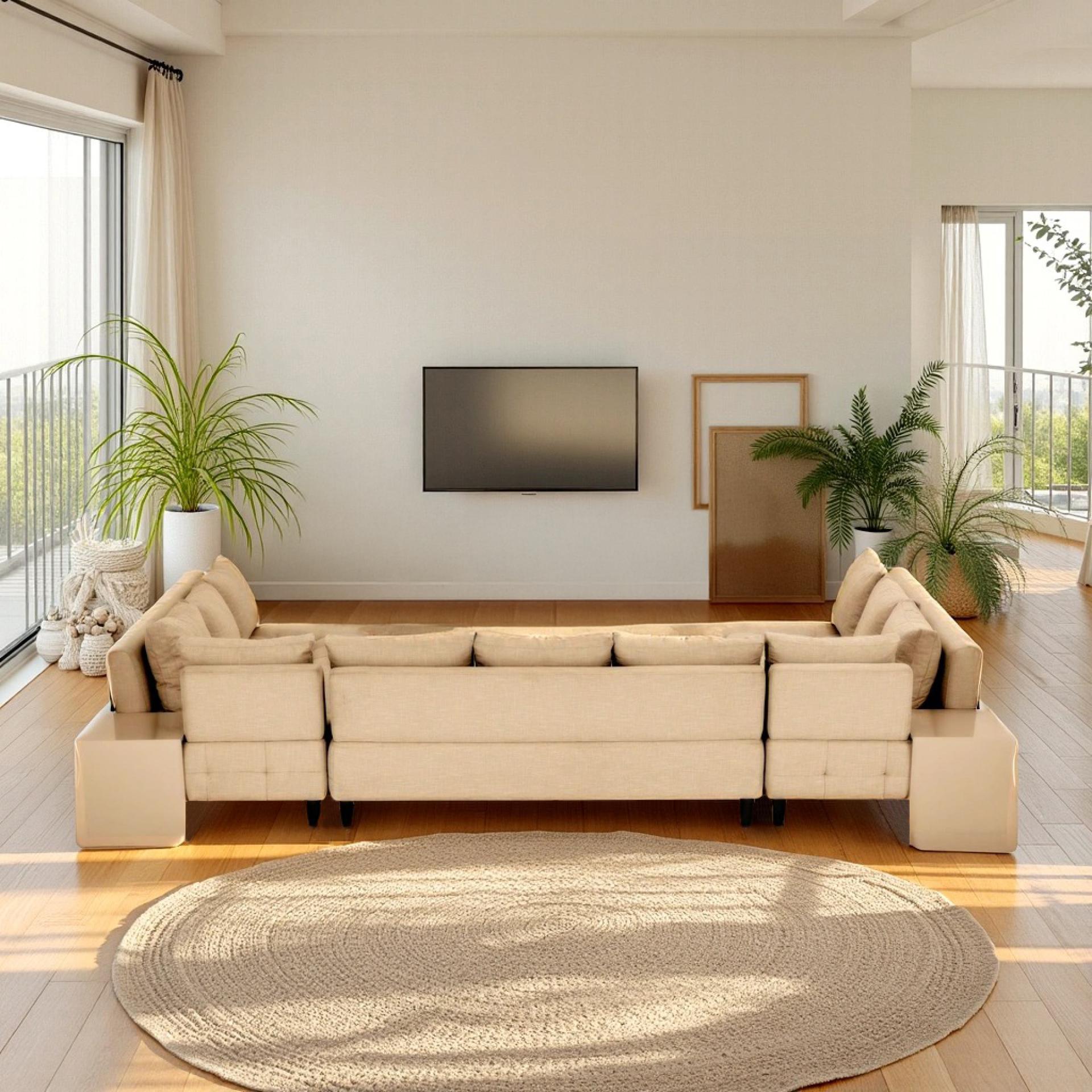 The Tonota U‑Shaped Couch fuses tailored linen upholstery with built‑in movable side tables, offering a smart blend of style and functionality. Its expansive seating and integrated surfaces make it perfect for versatile family rooms, collaborative workspaces, or modern lounges that value flexibility.